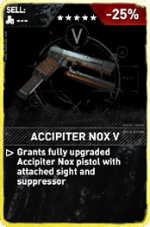 Grants fully upgraded Accipiter Nox with attached sight and suppressor
