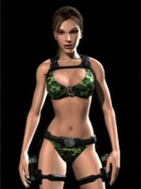 Camo Bikini is one of the exclusive outfits of the Xbox 360 version of Tomb Raider Underworld. It was released alongside the downloadable content Beneath the Ashes. This outfit is also available to use in the Treasure Hunt mode for Tomb Raider Underworld.