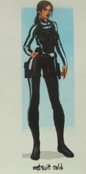 This is one of the unlockable outfits in Tomb Raider Underworld. Screens have shown her wearing it in the Artic Underworld. Lara mainly uses this in colder waters. It consists of a a one piece black rubbery suit with blue strips going down Lara's arms and around her neck.